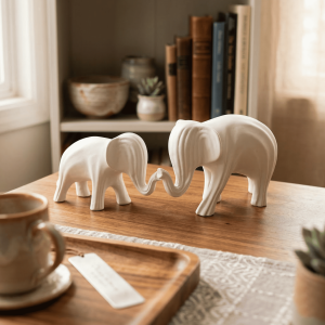 Ceramic Modern Sund Elephant Set of 2 (With Thermocol Box)
