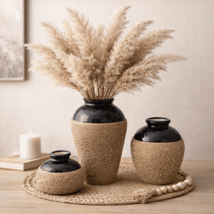 Ceramic Musa Pot Set Of 3 Brown Chita (With Thermocol Box)