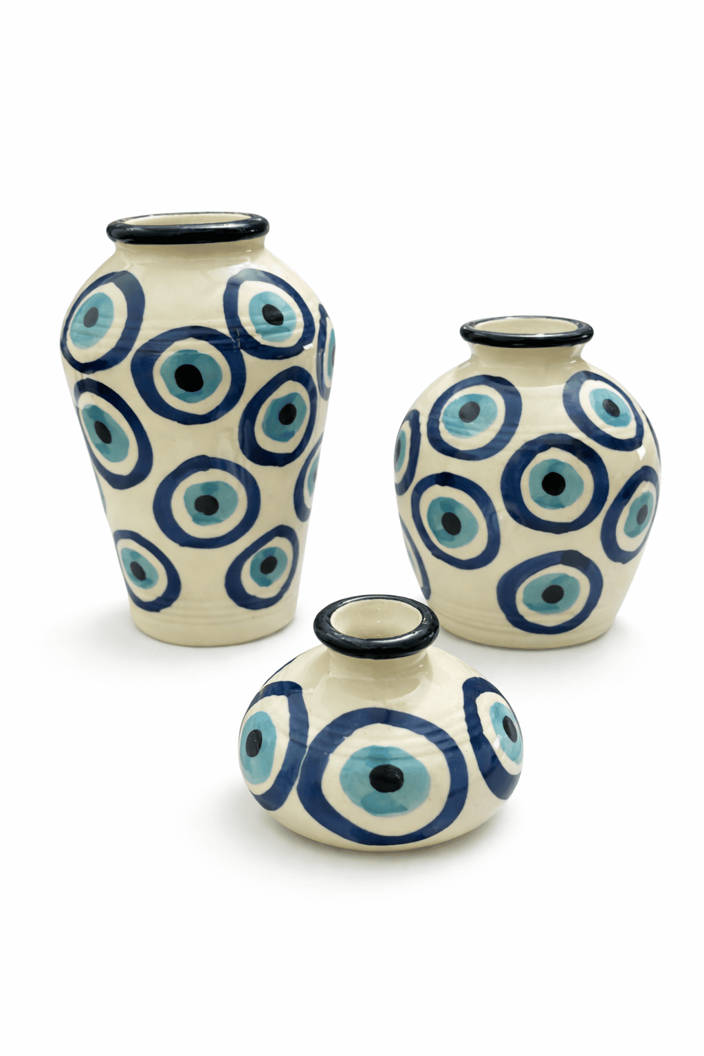 Ceramic Musa Pot Set Of 3 Evil Eye Print (With Thermocol Box)