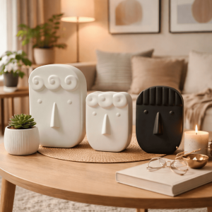 Ceramic Modern Face Vase Set Of 3 (With Thermocol Box)