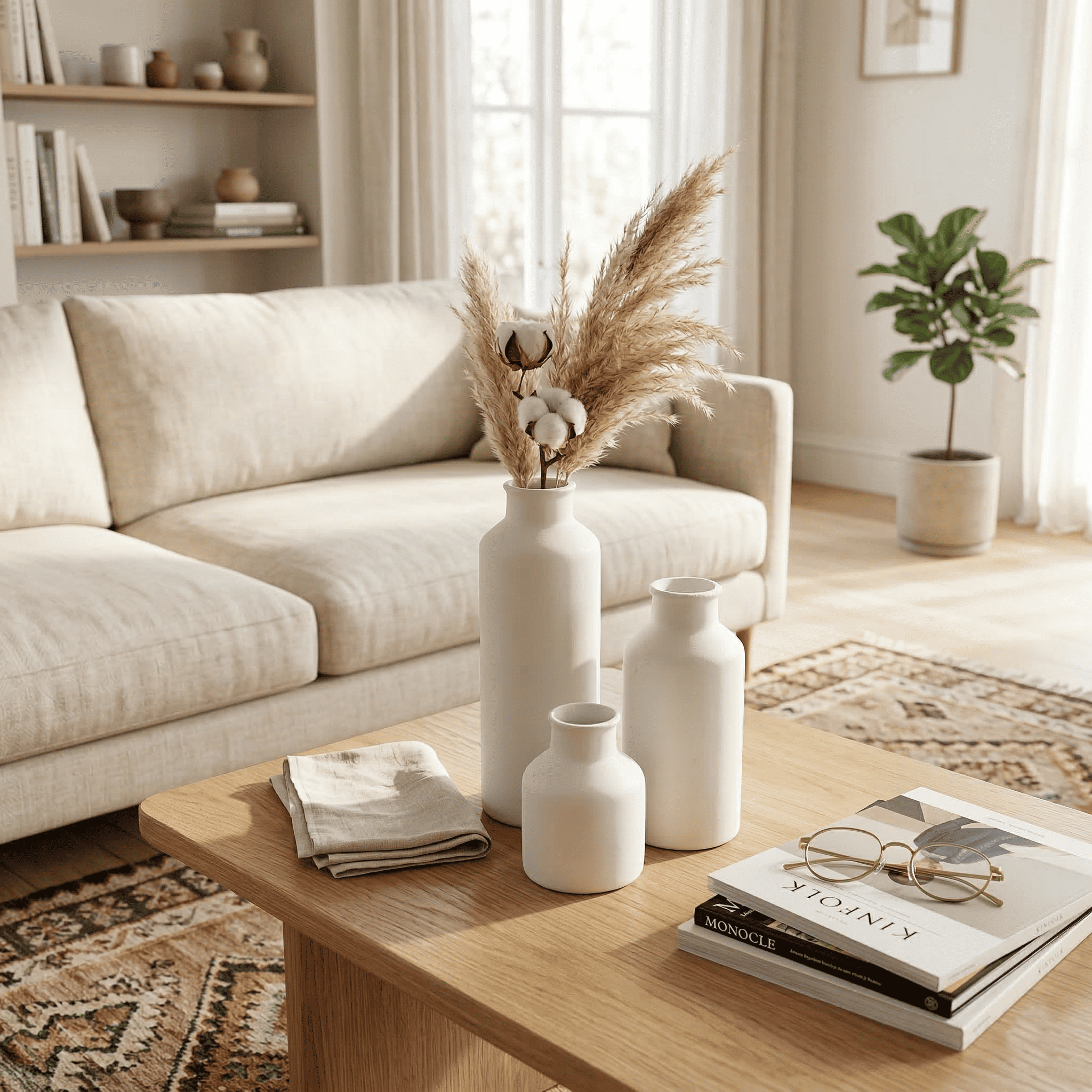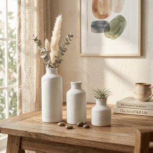 Ceramic Plain Bottle Vase White Set Of 3 (With Thermocol Box)