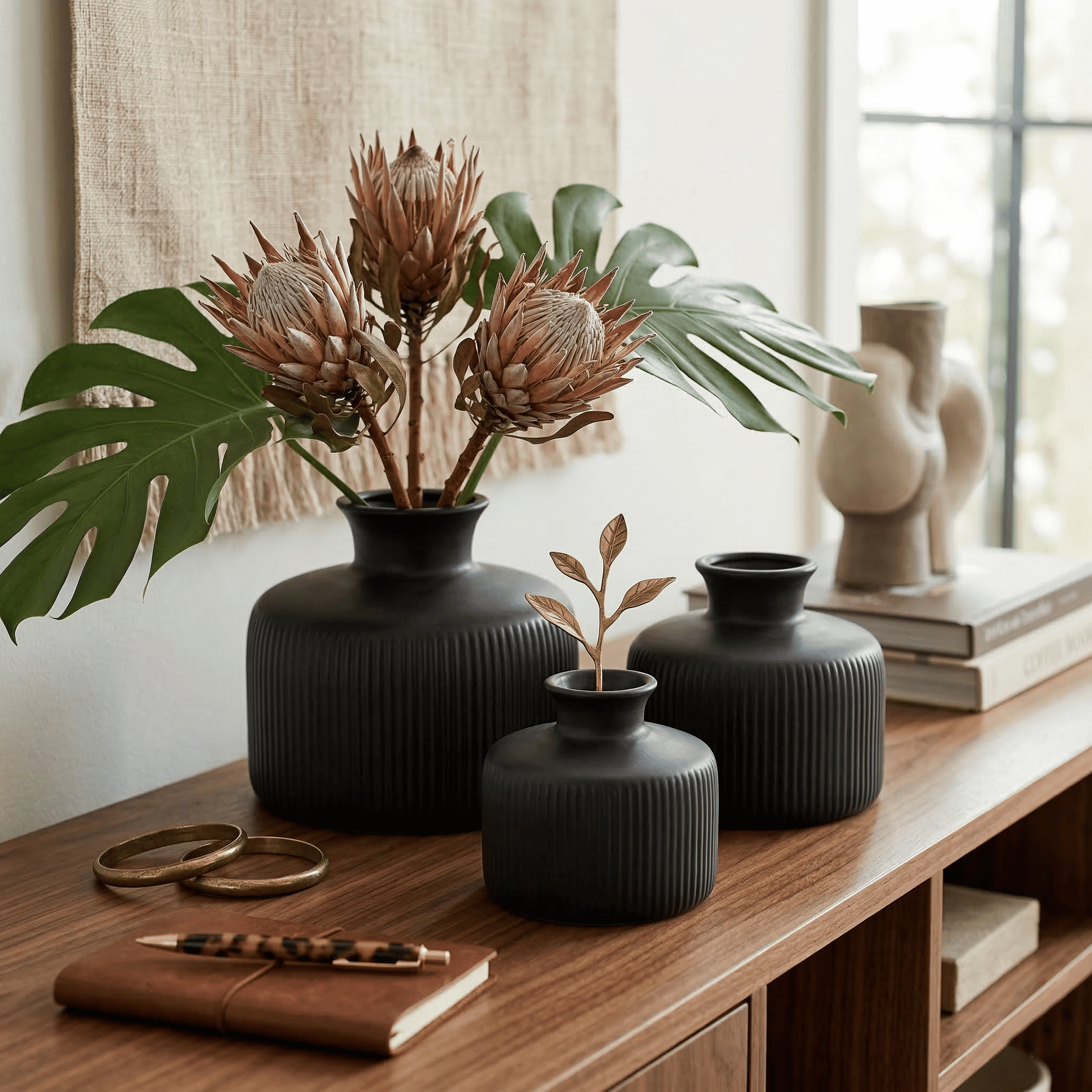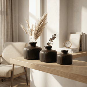 Ceramic Sansa Vase Set Of 3 Black (With Thermocol Box)