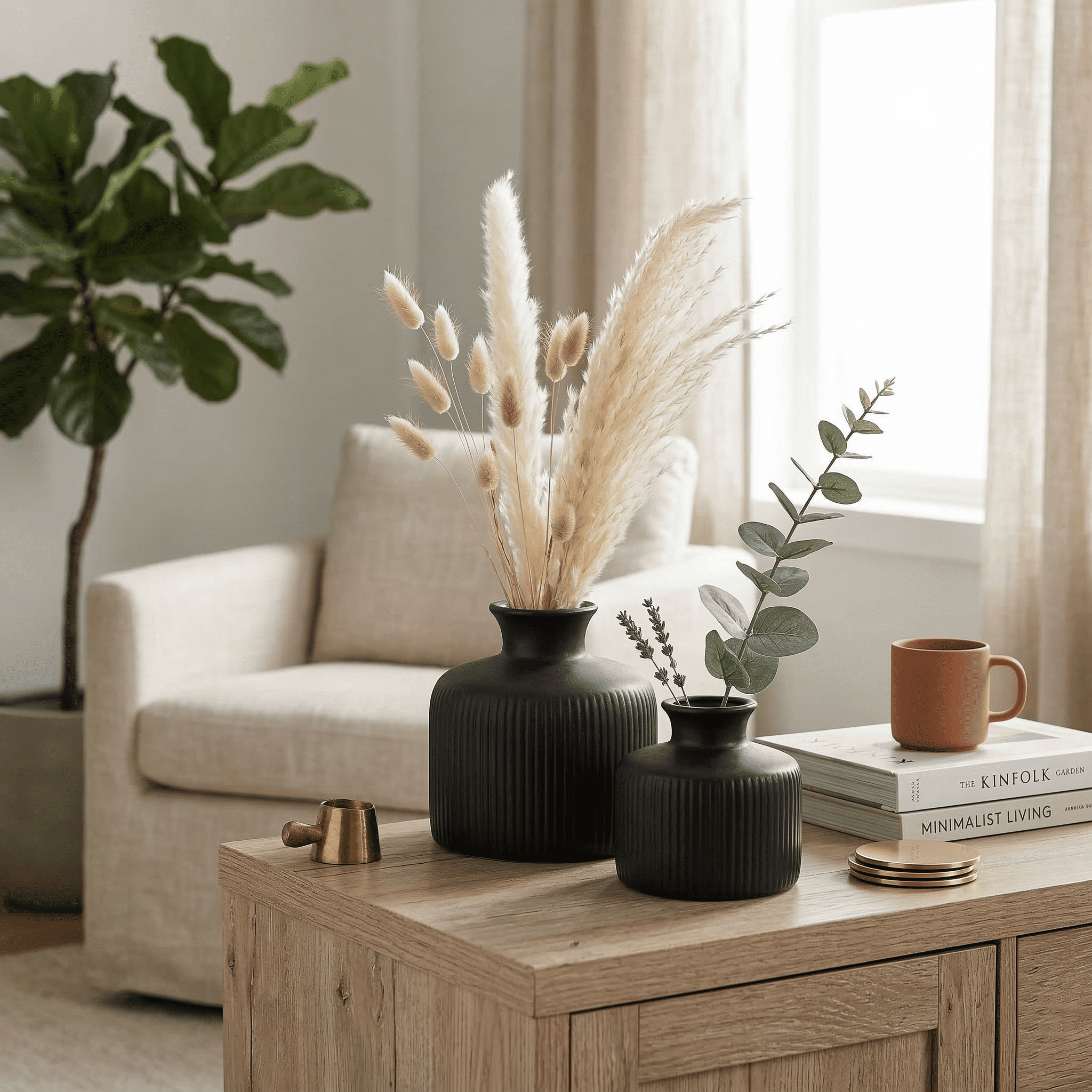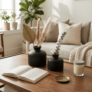 Ceramic Sansa Vase Set Of 2 Black (With Thermocol Box)