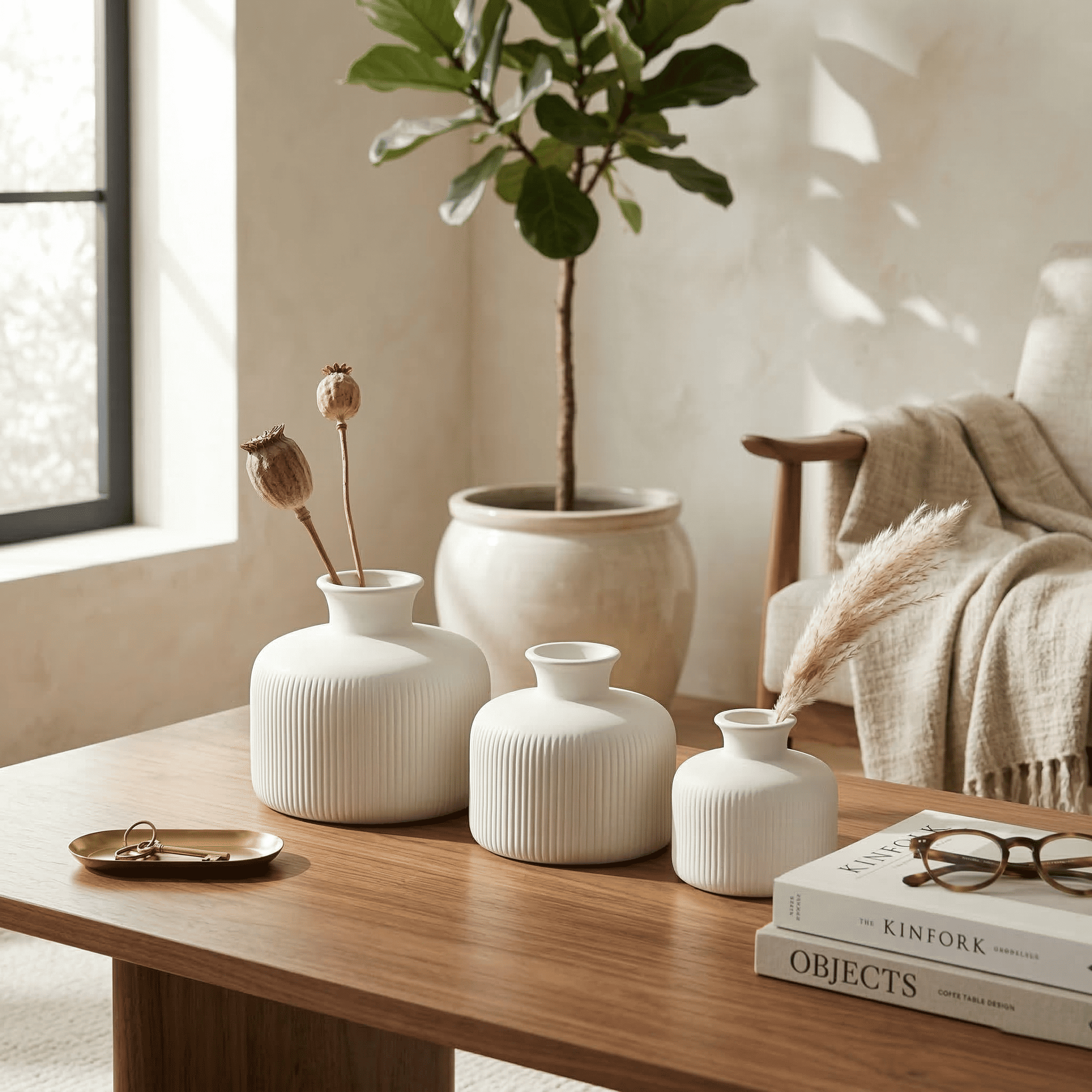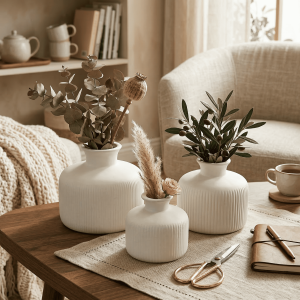 Ceramic Sansa Vase Set Of 3 White (With Thermocol Box)