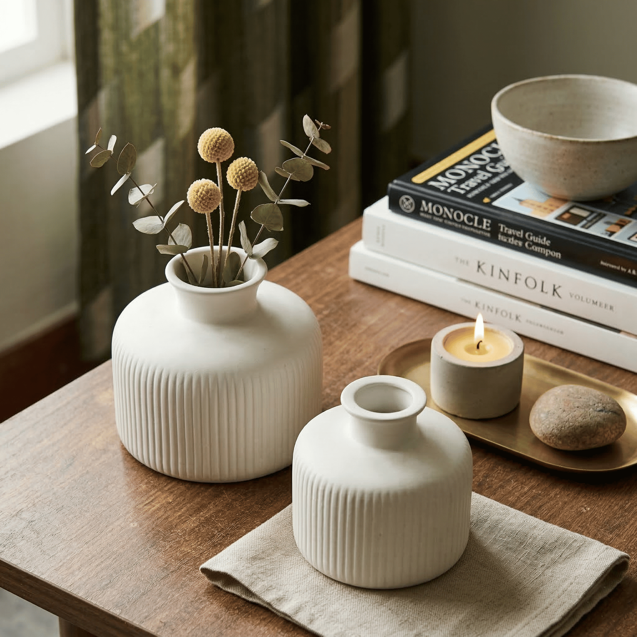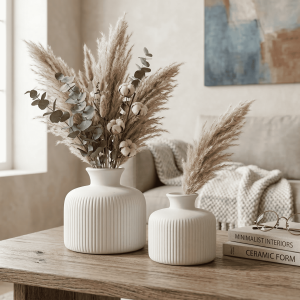 Ceramic Sansa Vase Set Of 2 White (With Thermocol Box)