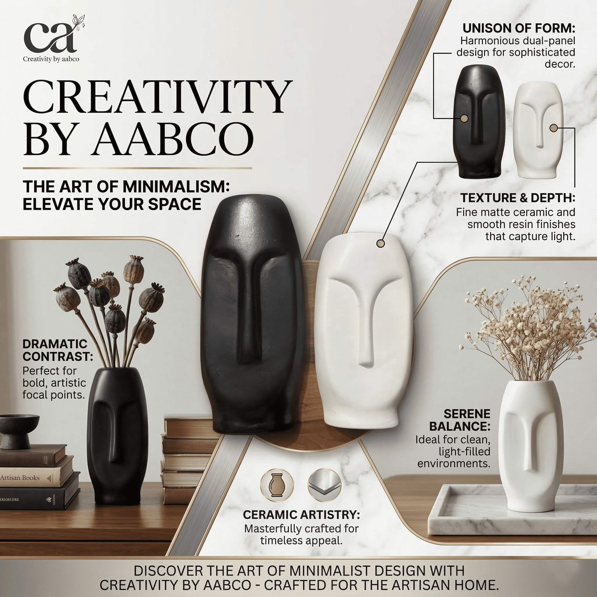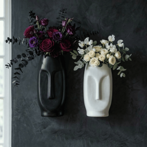 Ceramic Slim Wall Hanging Face Flower Vase Set Of 2 Black & White (With Thermocol Box)