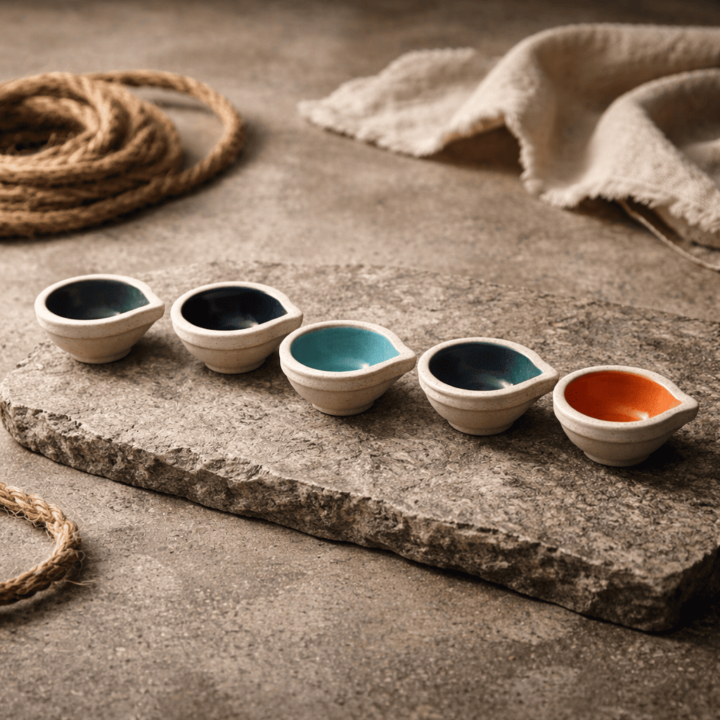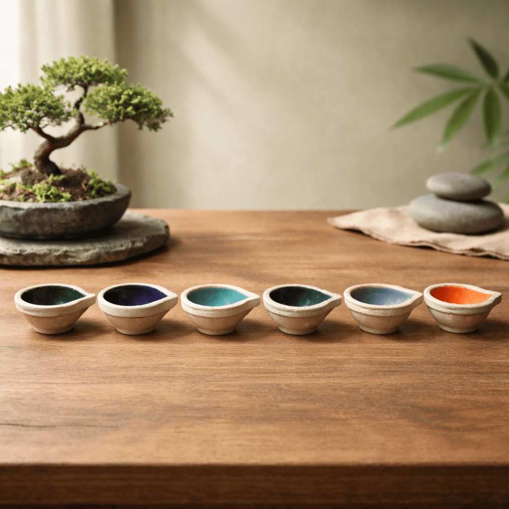 Ceramic Diya Set Of 6 In stock 1.7 × 1.7 × 1.7 in 50 g .