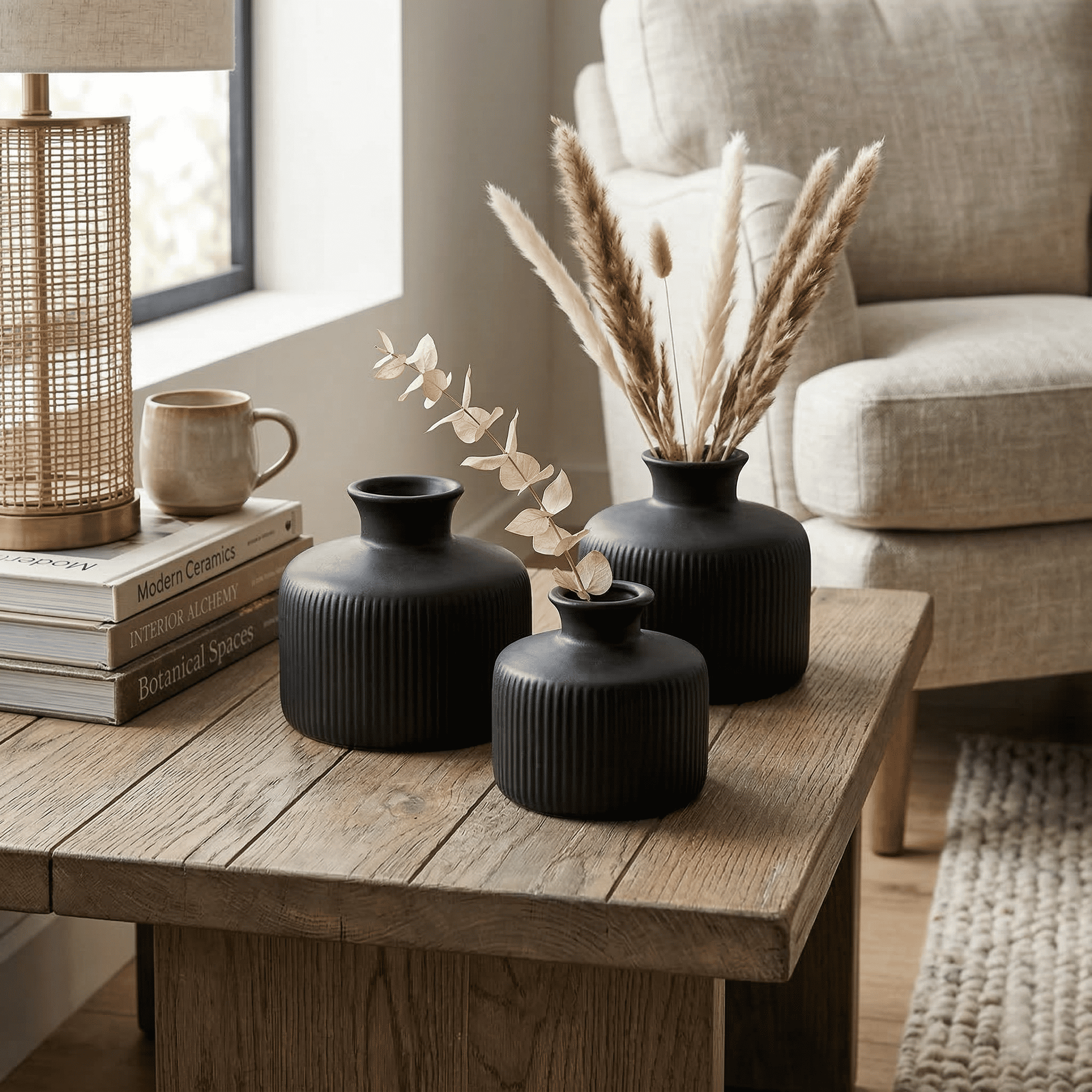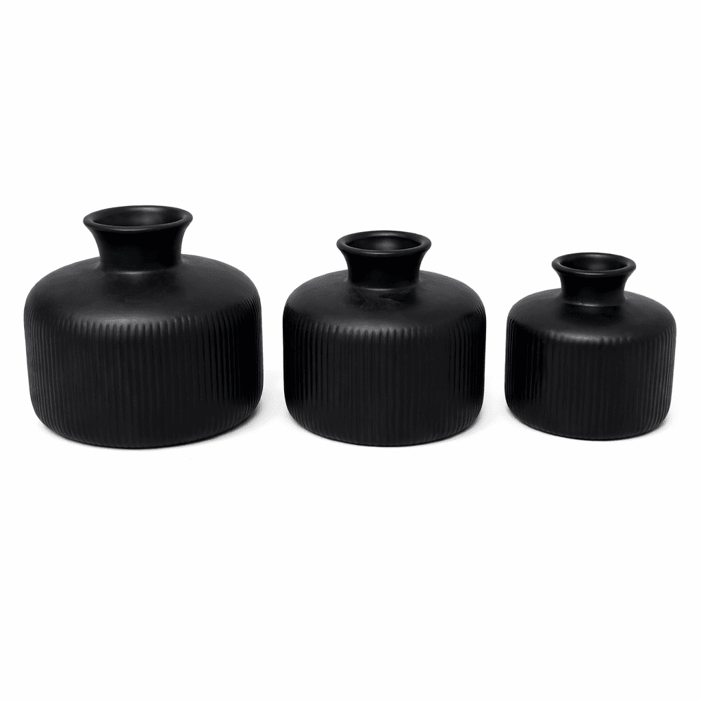 Ceramic Sansa Vase Set Of 3 Black (With Thermocol Box)