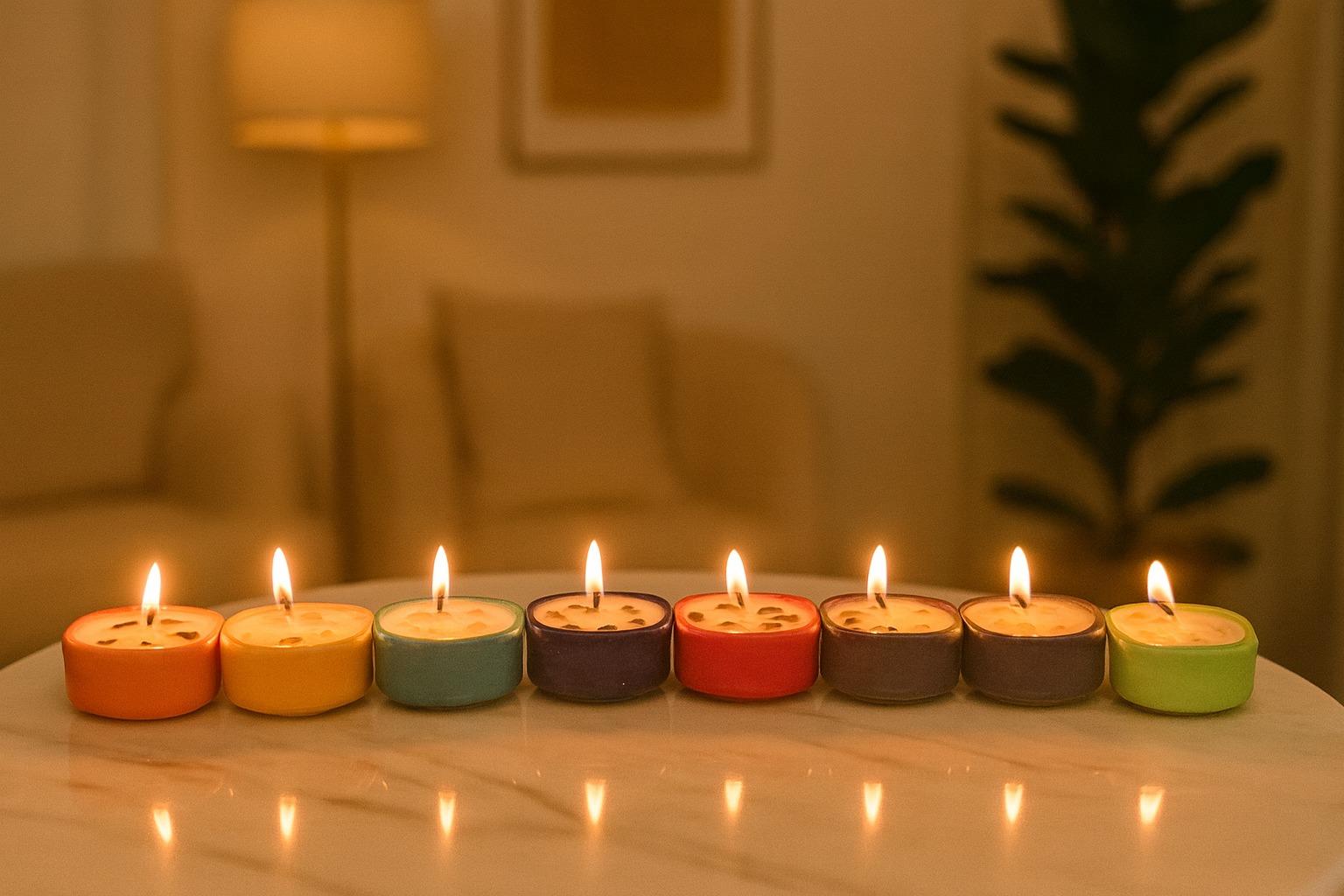 Ceramic Seven Chakra Candle Holder With Semi Precious Stone