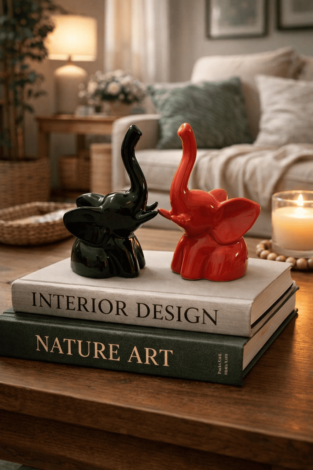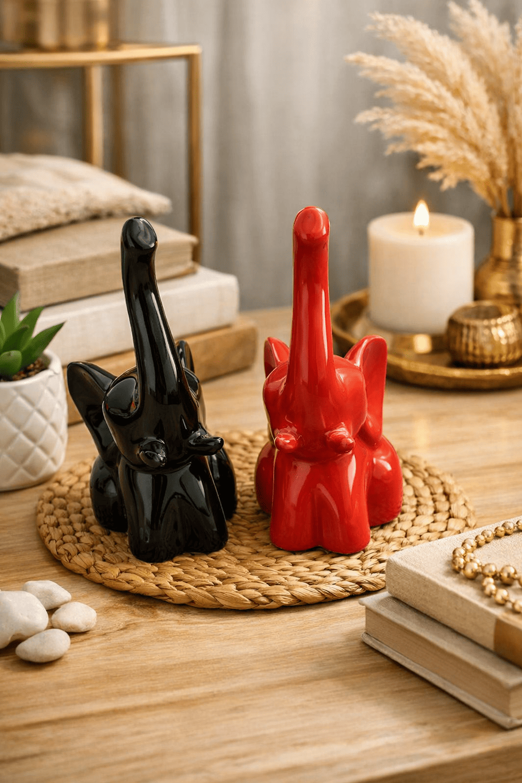 Ceramic Small High Sund Elephant Set Of 2 In stock 3 × 2.5 × 4.5 in 400 g .