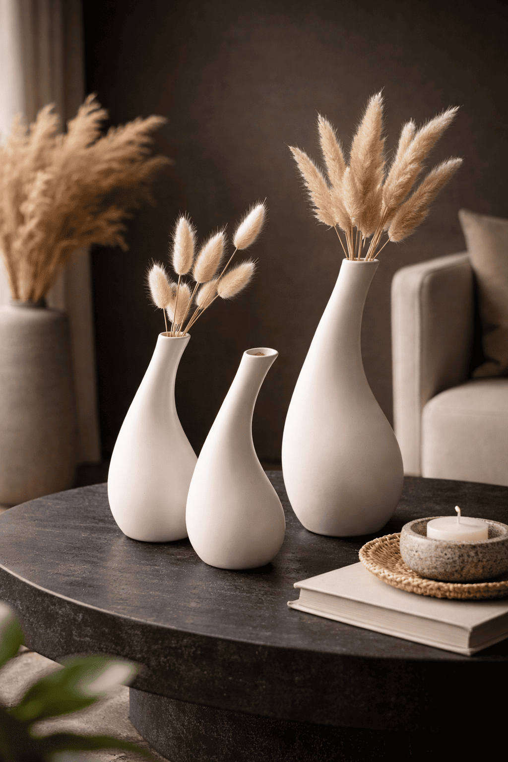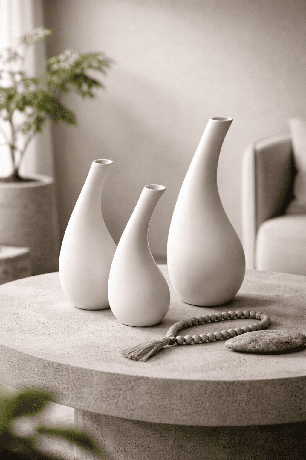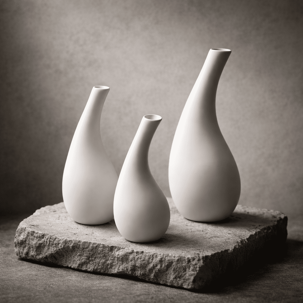 Ceramic Tilted Vase Set Of 3 White In stock 3.5 × 3 × 10 in 1500 g .