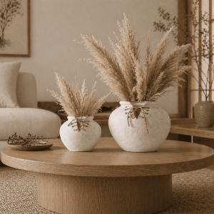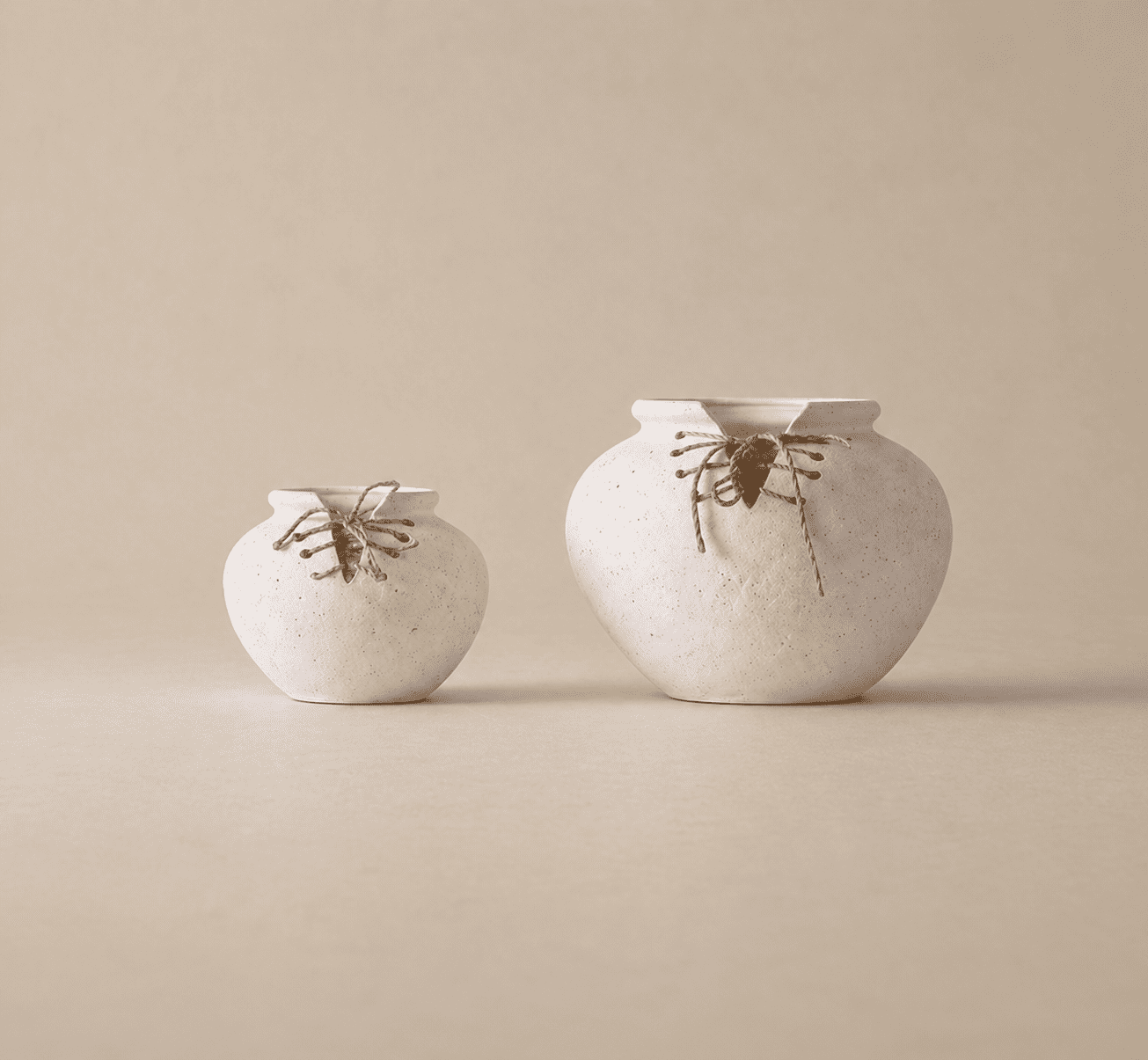 Ceramic Chapta Flower Vase Set Of 2 White (With Thermocol Box)
