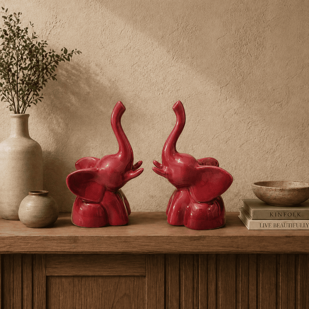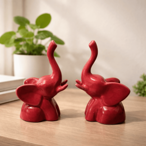 Ceramic High Sund Elephant Set Of 2 Red