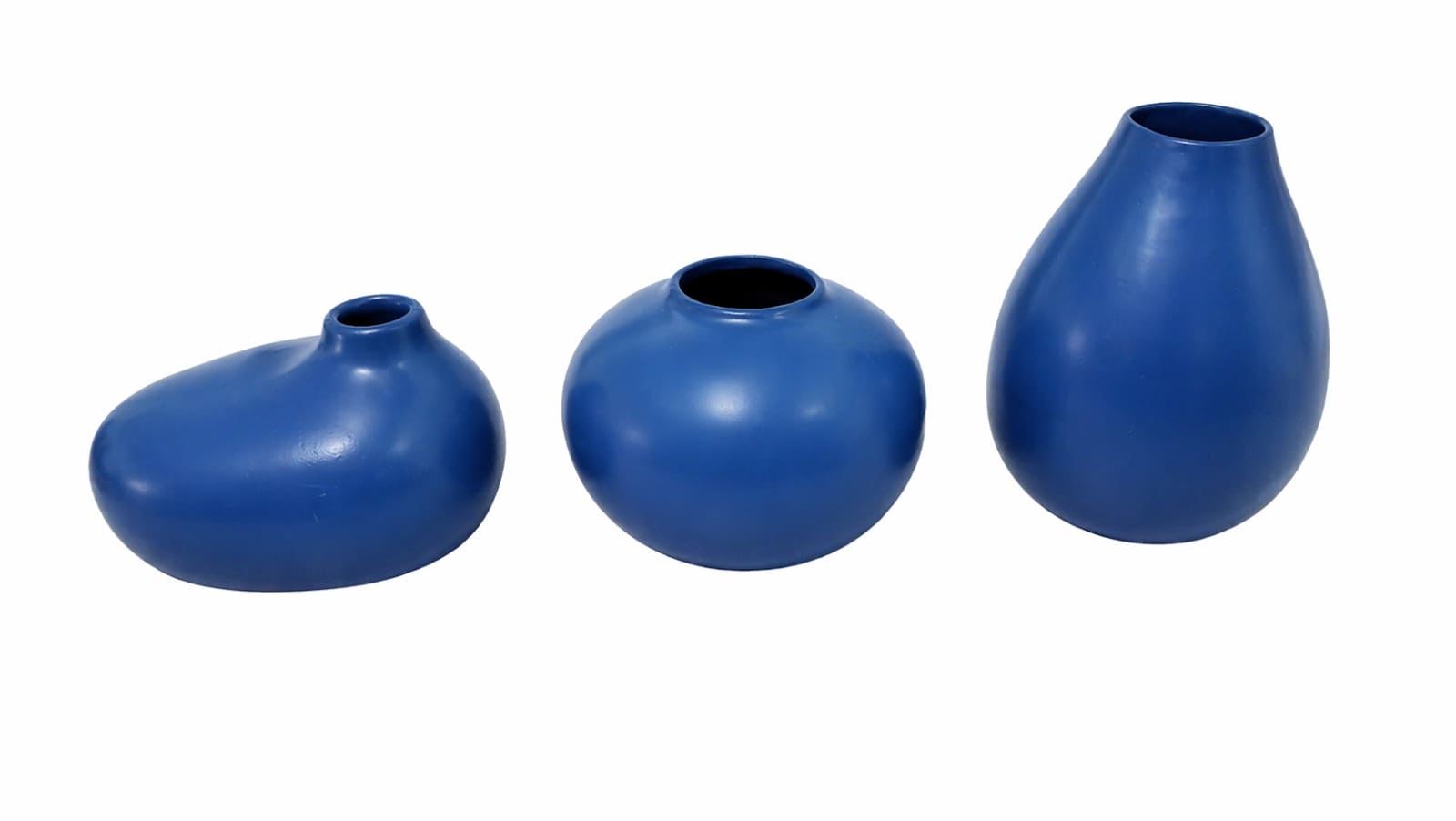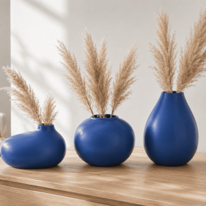 Ceramic Japanese Kick Vase Set Of 3 Blue
